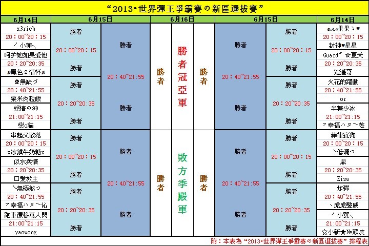 “2013•世界彈王爭霸賽の新區選拔賽”比賽排程